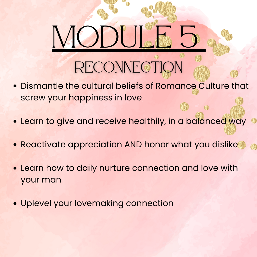 4 Core Modules + 2 Modules tailored for Women in a Relationship AND 2 Modules tailored for Single Women